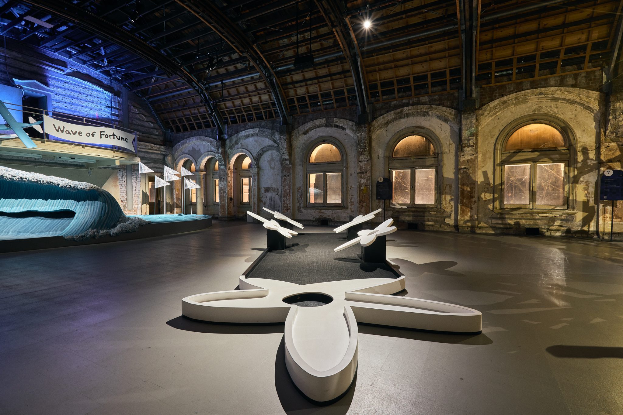 For Swamp Flower, BKTHERULA collaborates with Naarm/Melbourne-based sound artist Kate Miller to create an interactive, sound-based mini-golf hole. This work transforms the act of putting into a sonic experience, where ball and body movements trigger dynamic audio responses. Players can go straight for a hole-in-one or take the scenic route, activating multiple sensors to build a layered soundscape. Miller’s sound design—shaped by her background in-game audio and experimental composition—infuses the space with rhythmic textures and auditory cues.