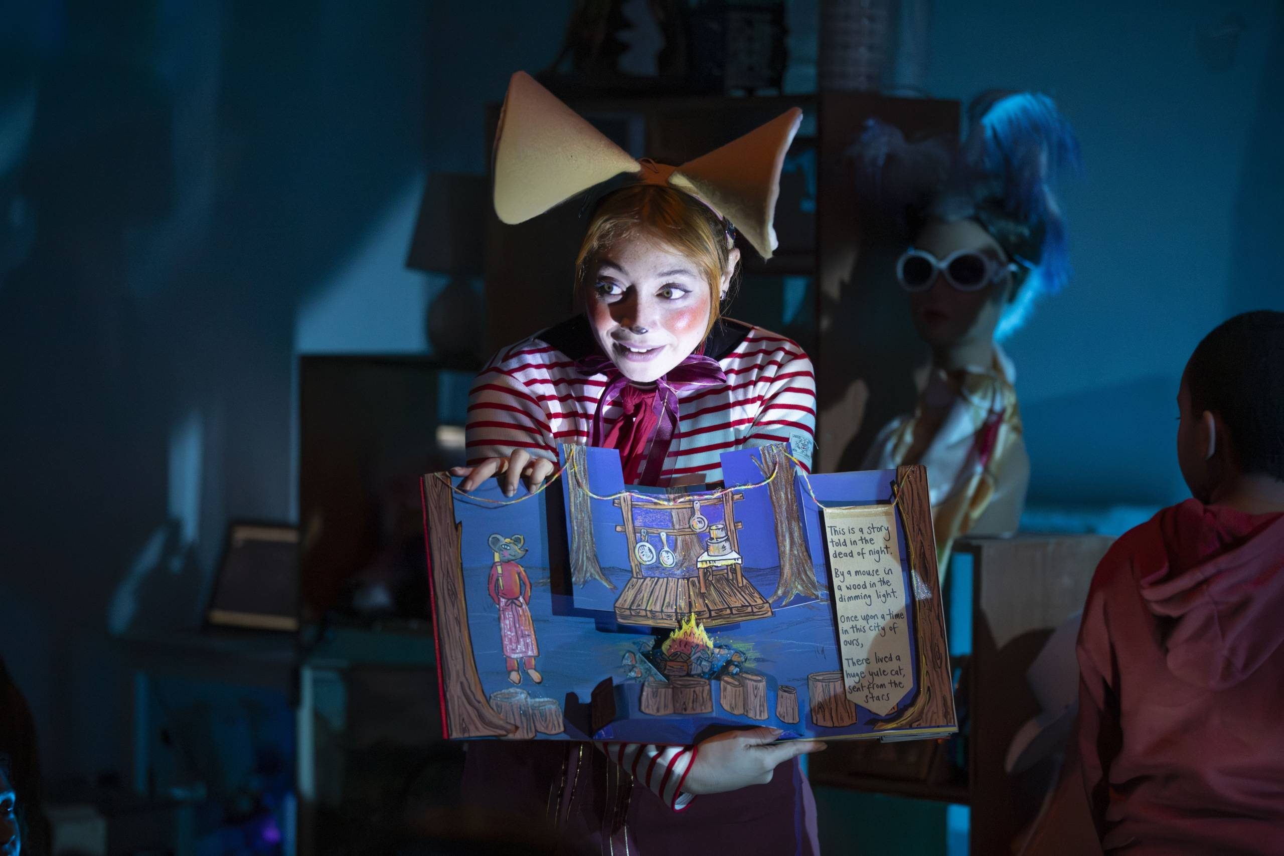 A sensory adapted performance means that intense and flashing lightings are reduced; loud sounds are lowered; there is less emphasis on text-based elements of the show; and there is more space for free play and exploration rather than following the narrative.